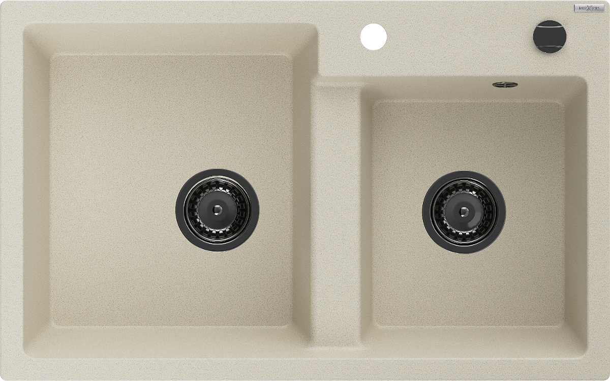 Mexen Tomas évier en granit à 2 bacs 800 x 500 mm, beige, siphon noir - 6516802000-69-B