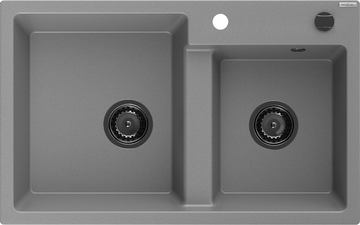 Mexen Tomas évier en granit à 2 bacs 800 x 500 mm, gris, siphon noir - 6516802000-71-B