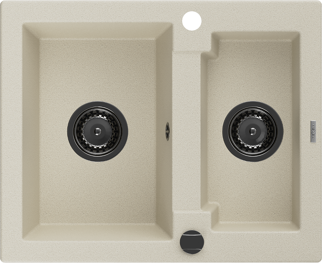 Mexen Carlos évier en granit 1,5 bac 582 x 475 mm, beige, siphon noir - 6518581500-69-B