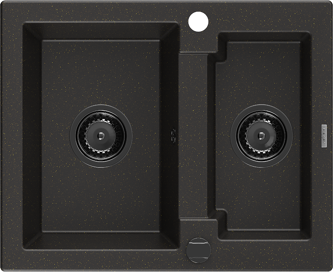 Mexen Carlos évier en granit 1,5 bac 582 x 475 mm, noir/doré métallique, siphon noir - 6518581500-75-B