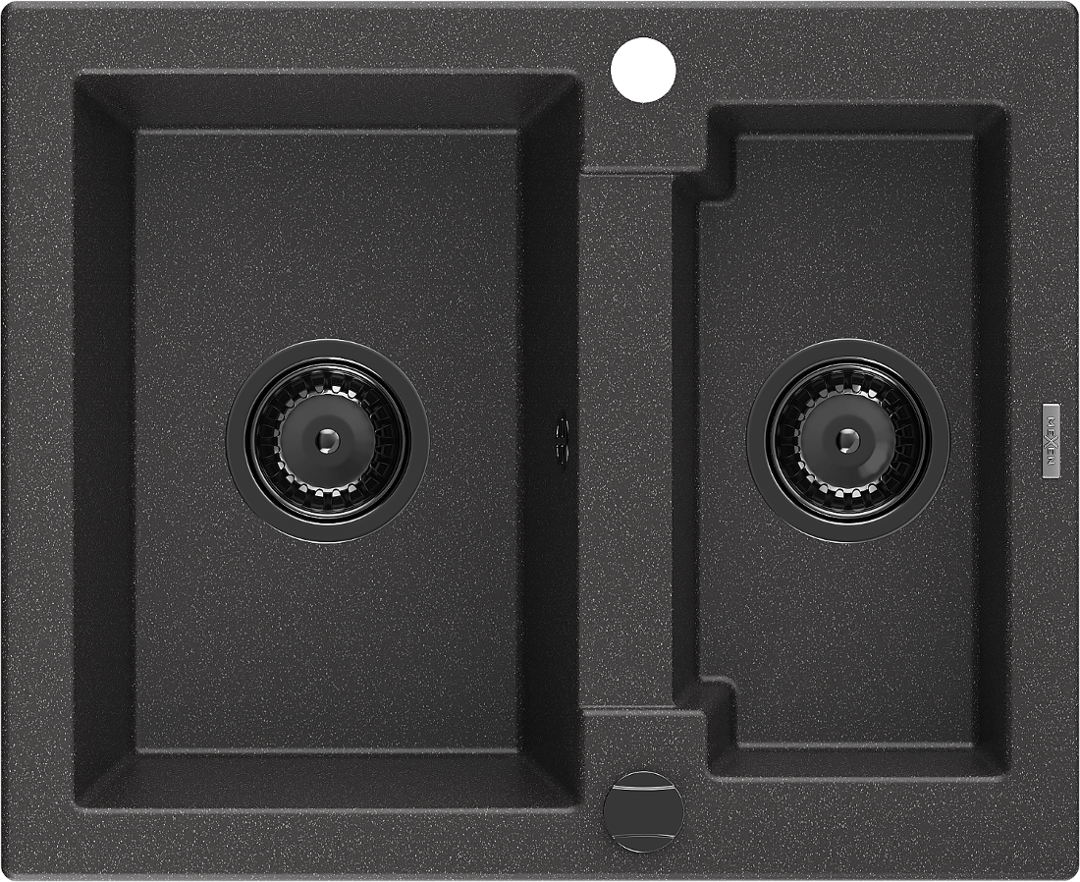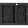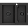 Mexen Carlos évier en granit 1,5 bac 582 x 475 mm, noir moucheté, siphon noir - 6518581500-76-B