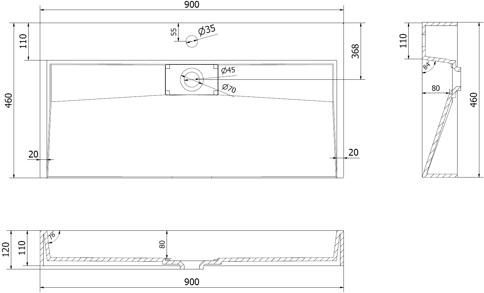 Taille: 90x46x11 cm
