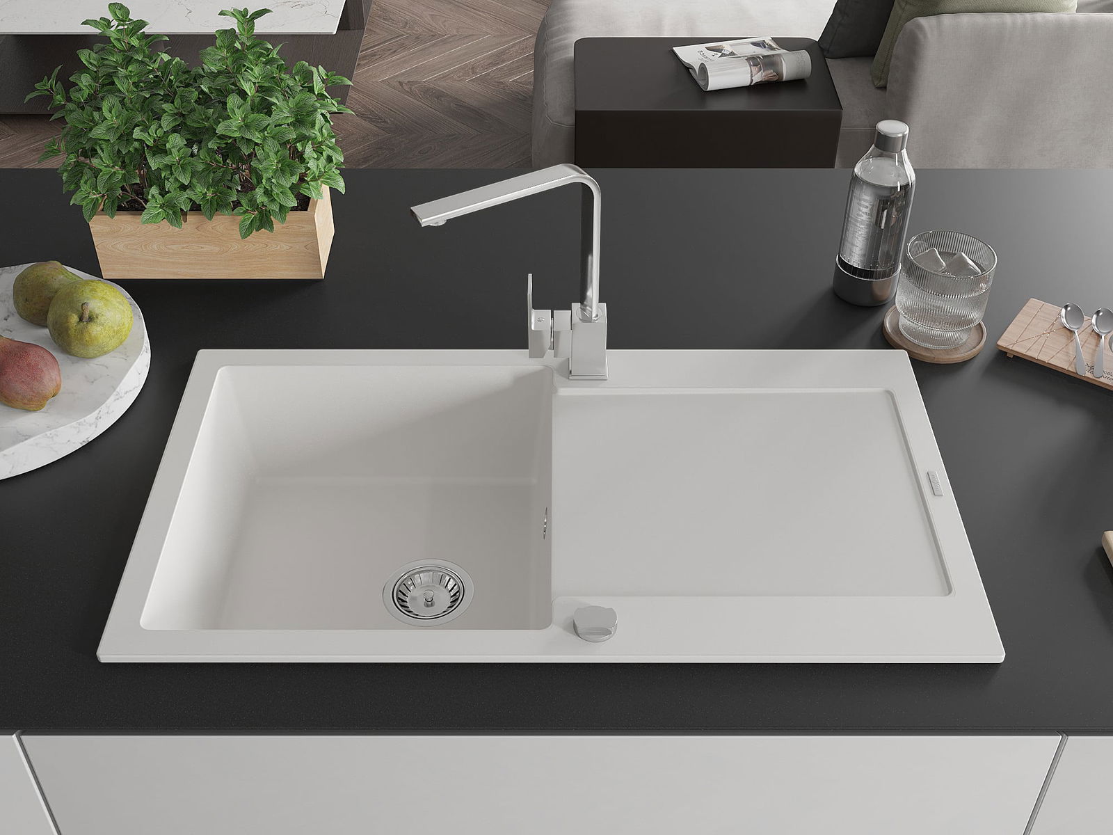 L'évier a été fabriqué en granit de haute qualité. Il constitue un complément élégant et surtout pratique à toute cuisine, quel que soit son style. La haute qualité et la durabilité du granit garantissent une utilisation pendant de nombreuses années.