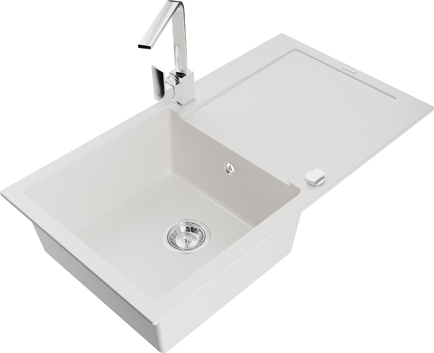 Mexen Leo évier en granit 1 bac avec égouttoir et robinet de cuisine Rita, blanc - 6501-20-670300-00