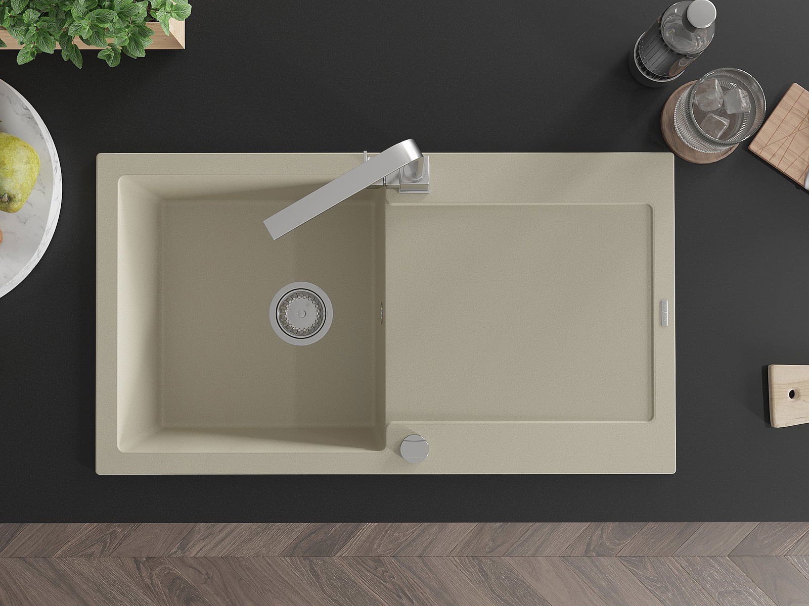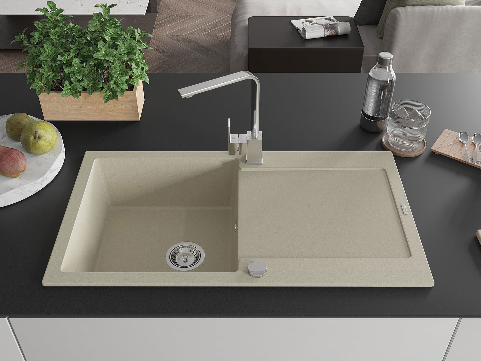 Mexen Leo évier en granit 1 bac avec égouttoir et robinet de cuisine Rita, beige - 6501-69-670300-00