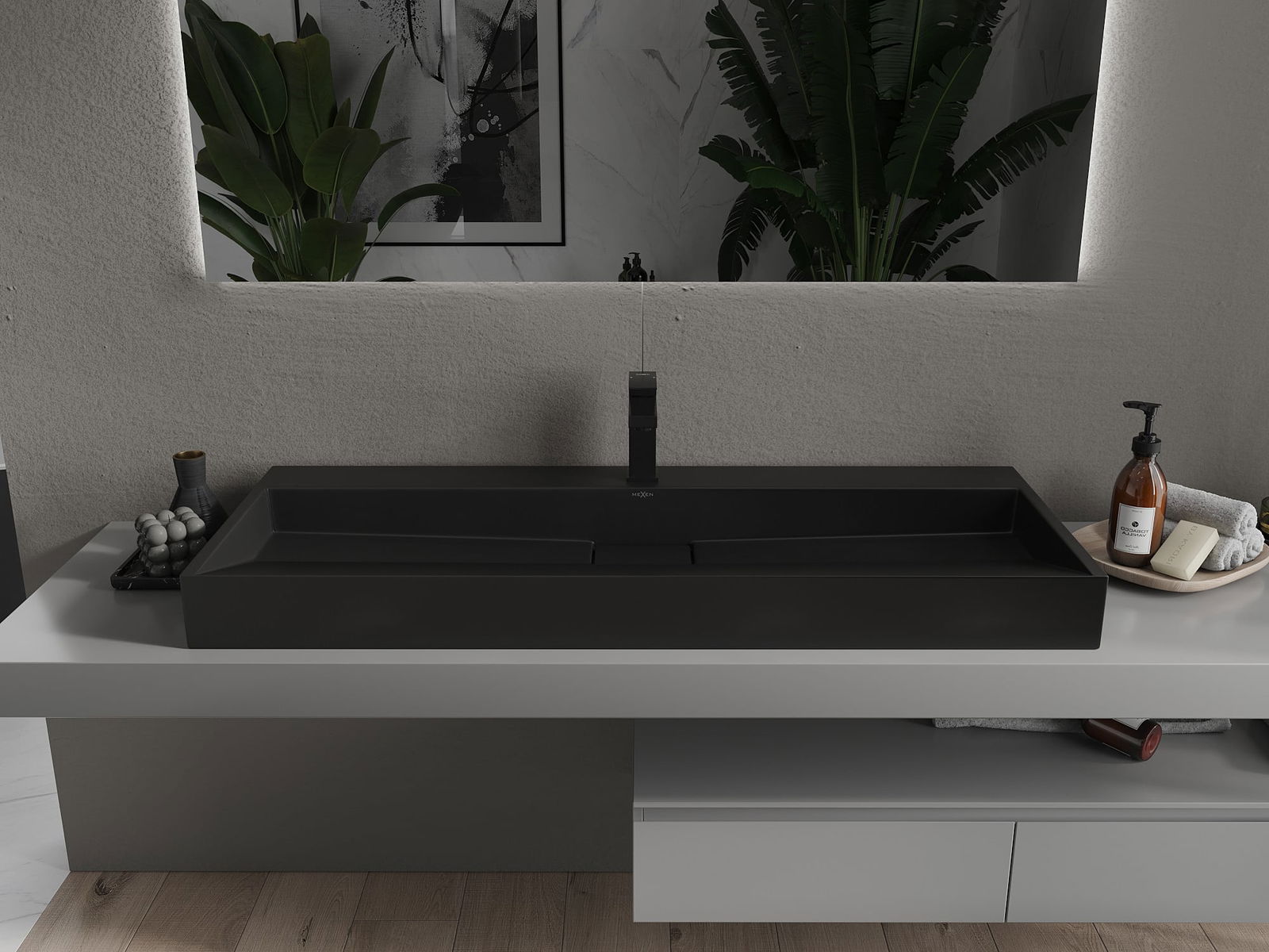 Mexen Ava lavabo à poser en conglomérat 1/O 120 x 46 cm, noir - 23011271