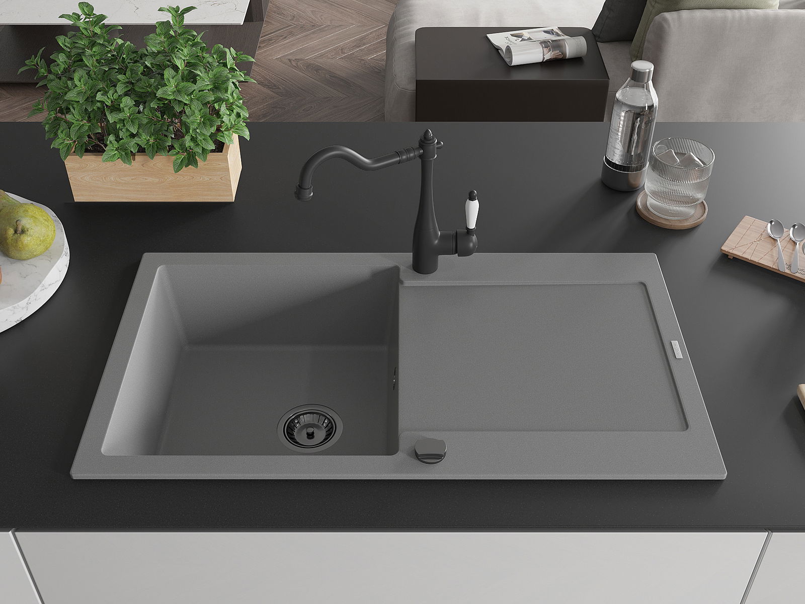 L'évier a été fabriqué en granit de haute qualité. Il constitue un complément élégant et surtout pratique à toute cuisine, quel que soit son style. La haute qualité et la durabilité du granit garantissent une utilisation pendant de nombreuses années.