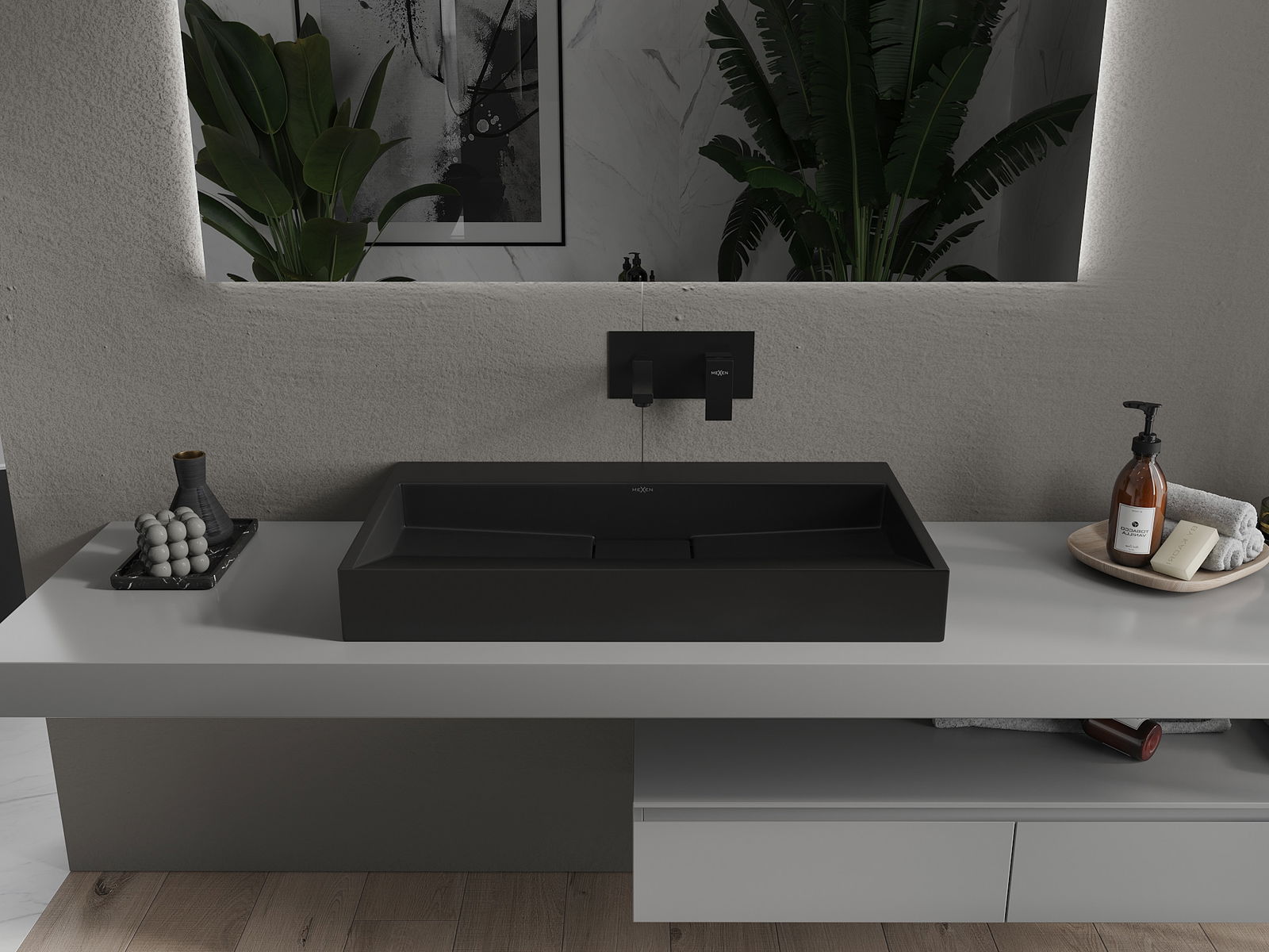 Mexen Ava lavabo sur plan en conglomérat B/O 80 x 46 cm, noir - 23018070