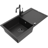 Mexen Leo évier en granit à 1 bac avec égouttoir et robinet de cuisine Carla, noir/or métallisé - 6501-75-670700-70-B