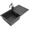 Mexen Leo évier en granit 1 bac avec égouttoir et robinet de cuisine Carla, noir - 6501-77-670700-70-B