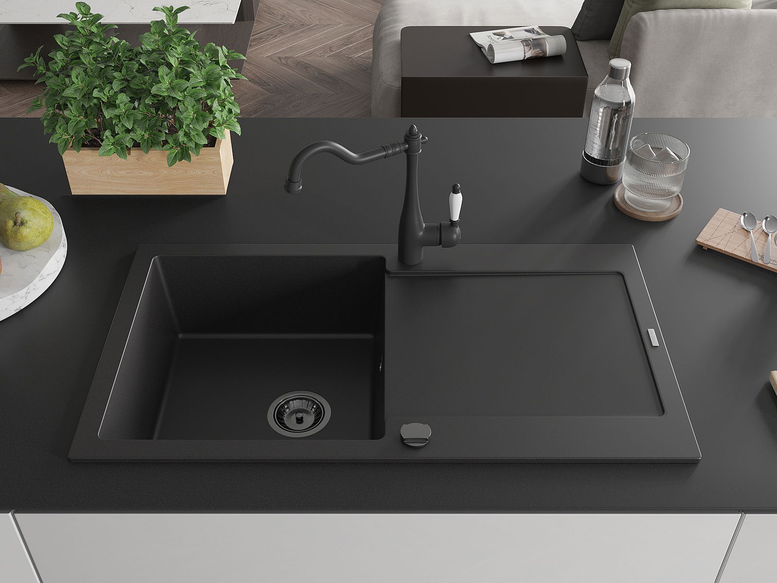 L'évier a été fabriqué en granit de haute qualité. Il constitue un complément élégant et surtout pratique à toute cuisine, quel que soit son style. La haute qualité et la durabilité du granit garantissent une utilisation pendant de nombreuses années.