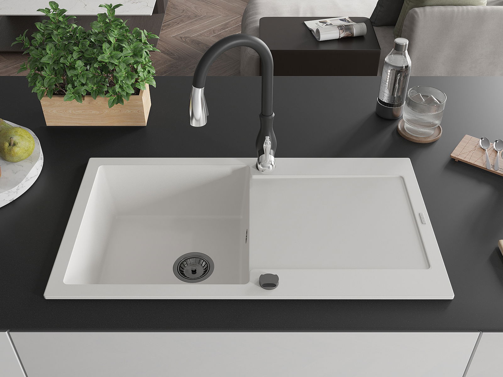 L'évier a été fabriqué en granit de haute qualité. Il constitue un complément élégant et surtout pratique à toute cuisine, quel que soit son style. La haute qualité et la durabilité du granit garantissent une utilisation pendant de nombreuses années.