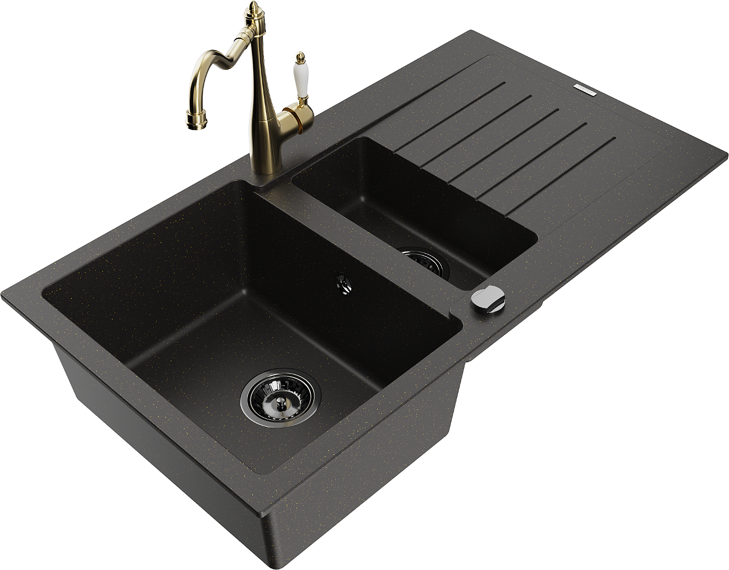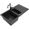 Mexen Matias évier en granit 1,5 cuves avec égouttoir et robinet de cuisine Carla noir/doré métallisé - 6502-75-670700-50-B