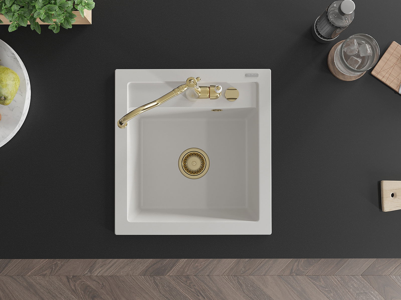 L'évier a un trou sous-meulé de 35 mm de diamètre à percer soi-même. Il peut être utilisé, entre autres, pour installer un distributeur de liquide, ce qui éliminera la présence de bouteilles en plastique dans la cuisine et lui donnera une finition élégante.
