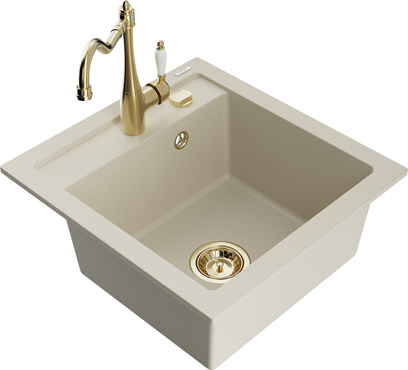 Mexen Vito évier en granit 1 bac avec robinet de cuisine Carla, beige - 6503-69-670700-50