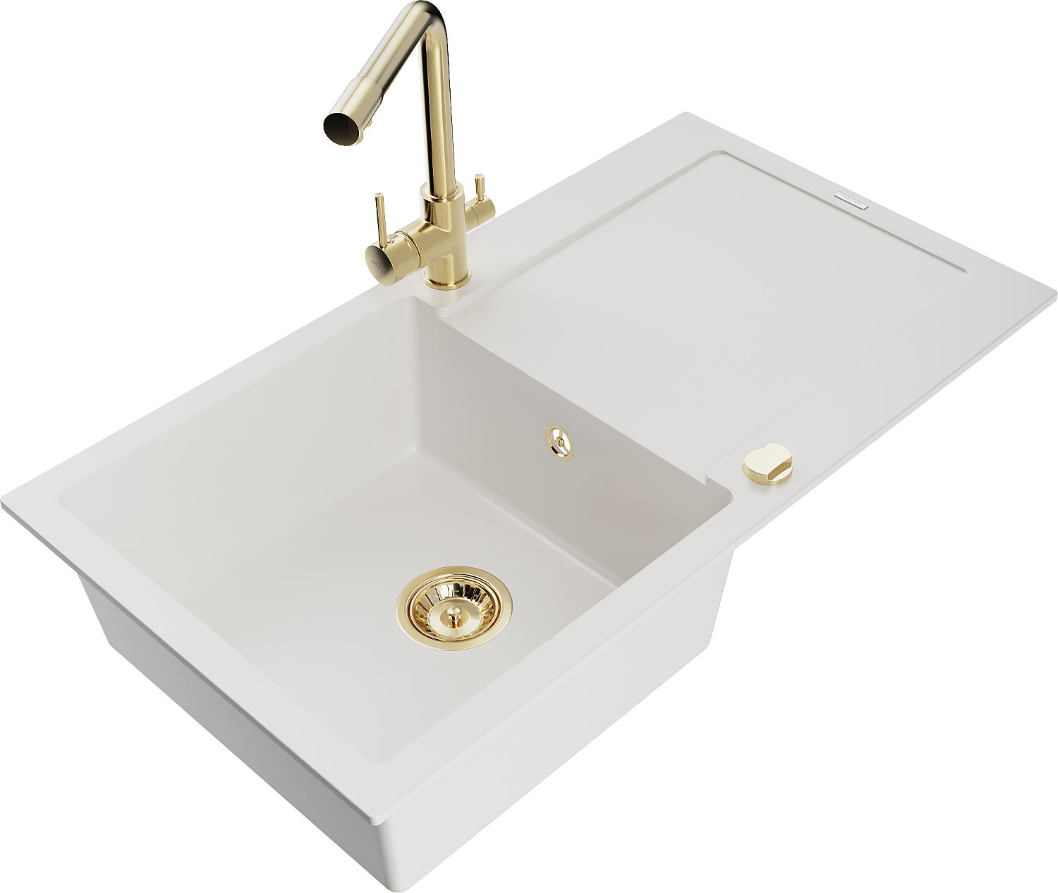 Mexen Leo évier en granit 1 bac avec égouttoir et robinet de cuisine Duero, blanc - 6501-20-671600-50