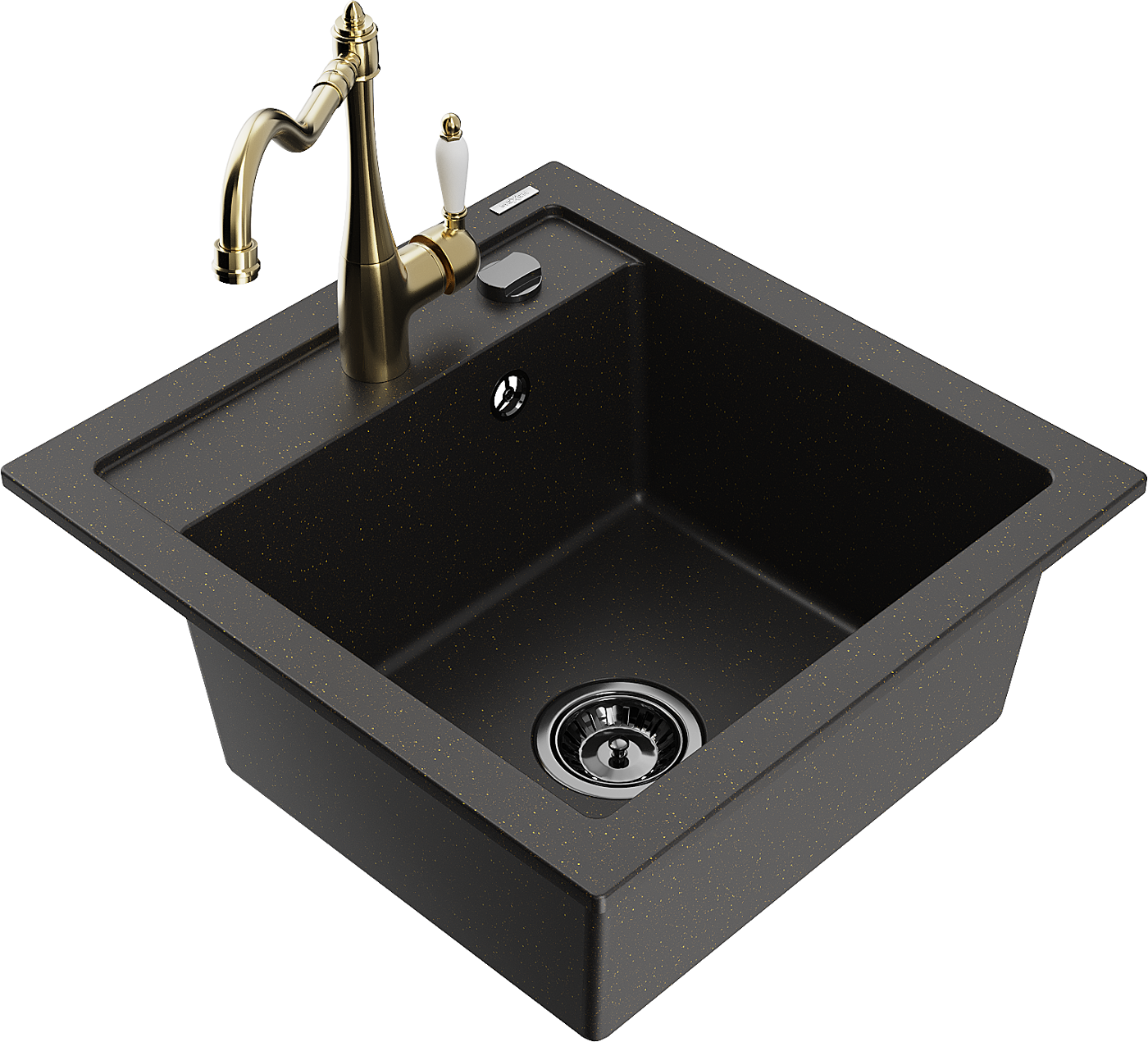 Mexen Vito évier en granit 1 bac avec mitigeur de cuisine Carla, noir/doré métallisé - 6503-75-670700-50-B