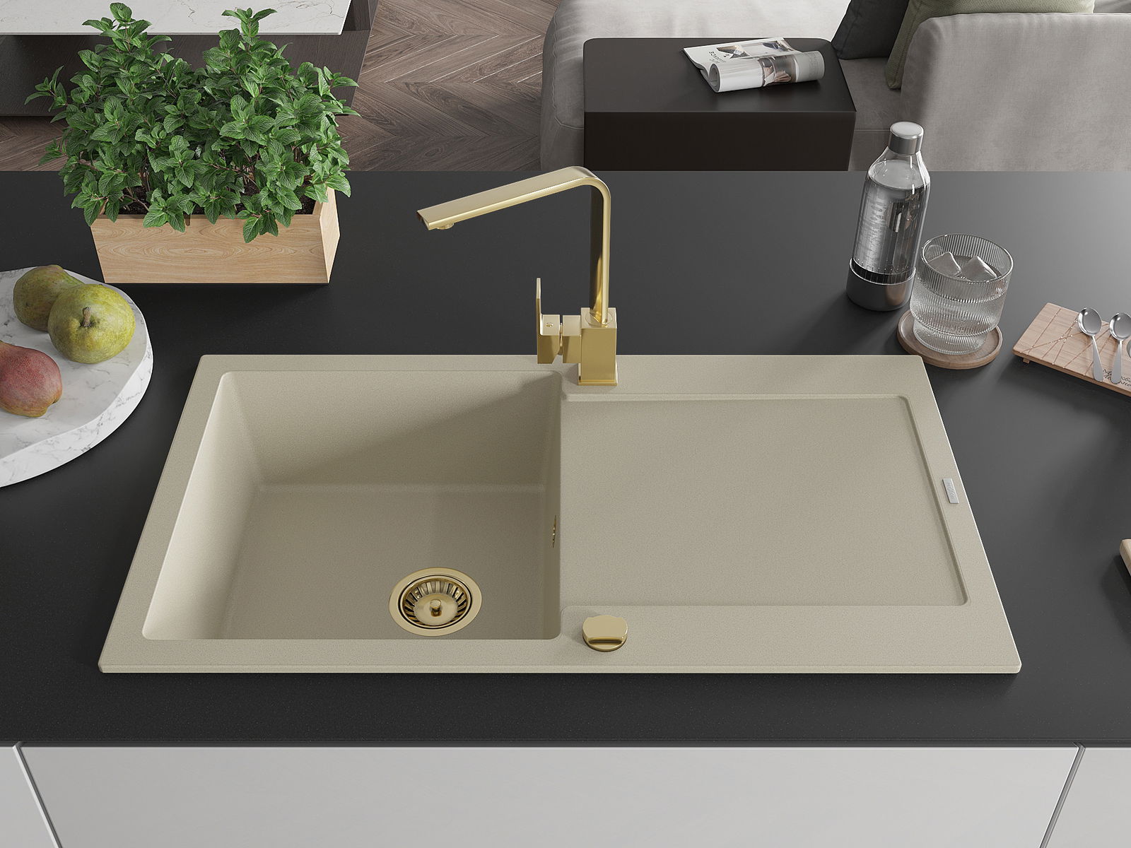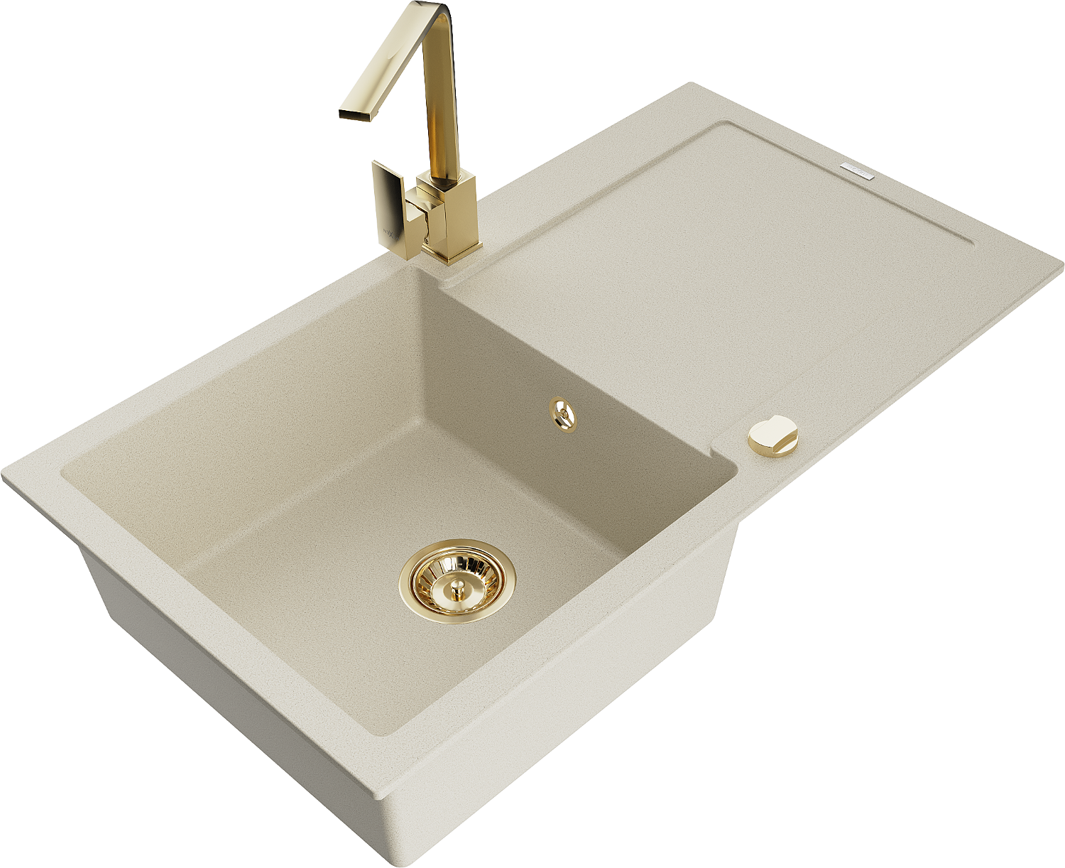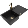 Mexen Leo évier en granit 1 bac avec égouttoir et robinet de cuisine Rita, beige - 6501-69-670300-50