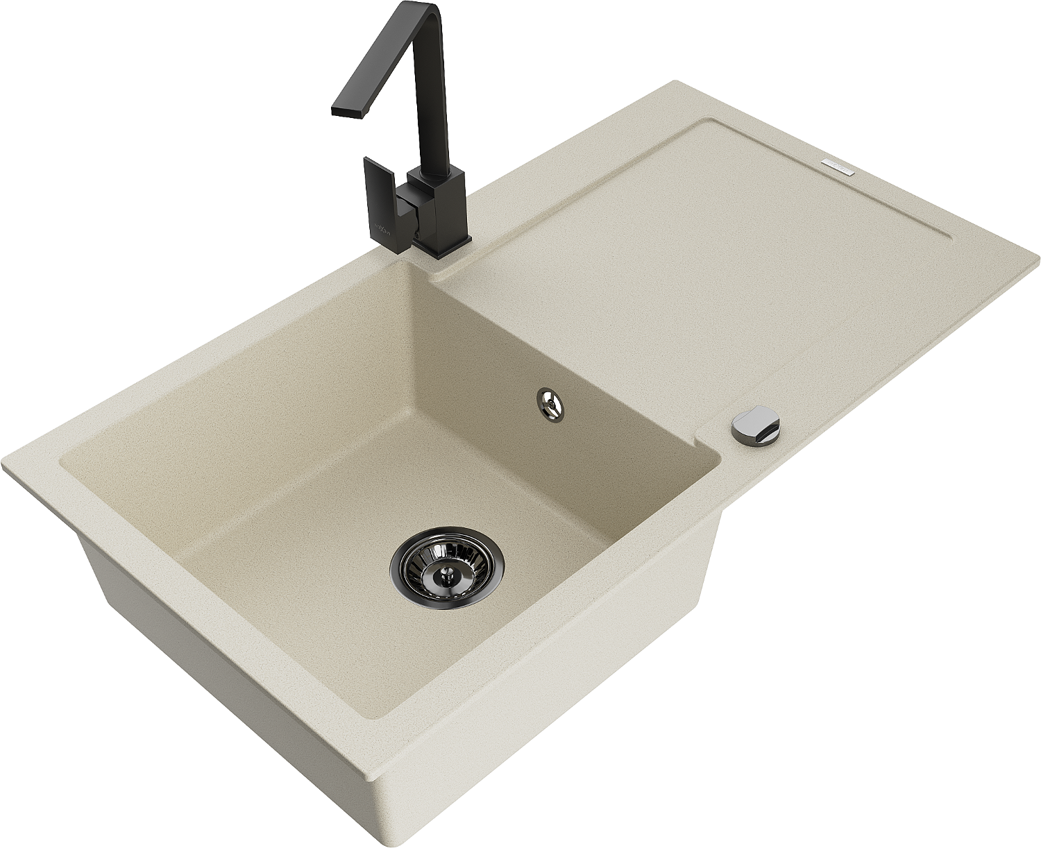 Mexen Leo évier en granit 1 bac avec égouttoir et robinet de cuisine Rita, beige - 6501-69-670300-70