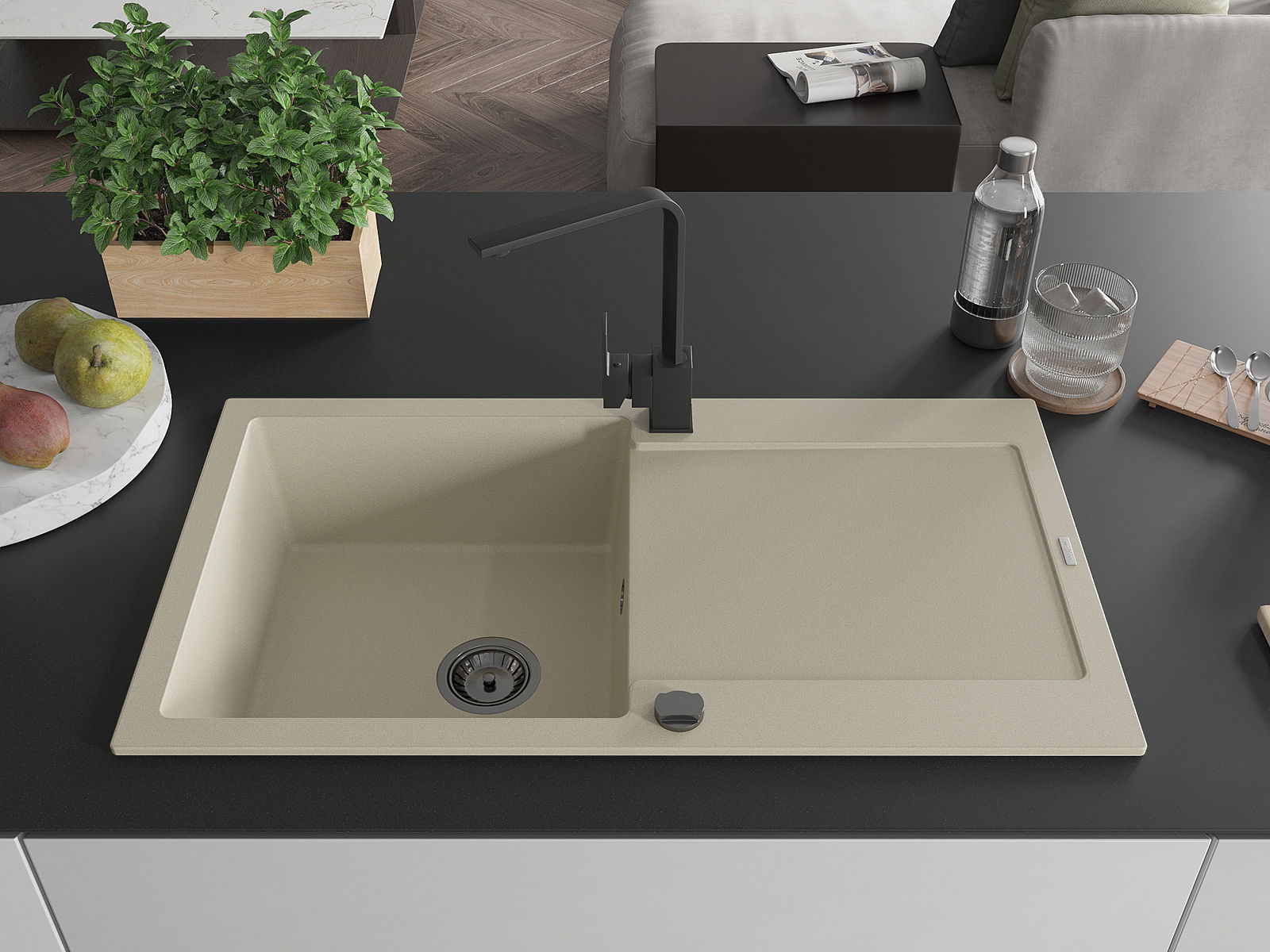 L'évier a été fabriqué en granit de haute qualité. Il constitue un complément élégant et surtout pratique à toute cuisine, quel que soit son style. La haute qualité et la durabilité du granit garantissent une utilisation pendant de nombreuses années.