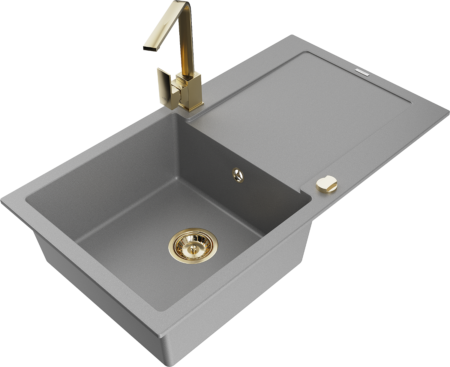 Mexen Leo évier en granit 1 bac avec égouttoir et robinet de cuisine Rita, gris - 6501-71-670300-50