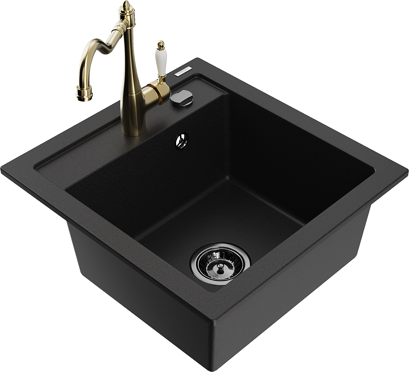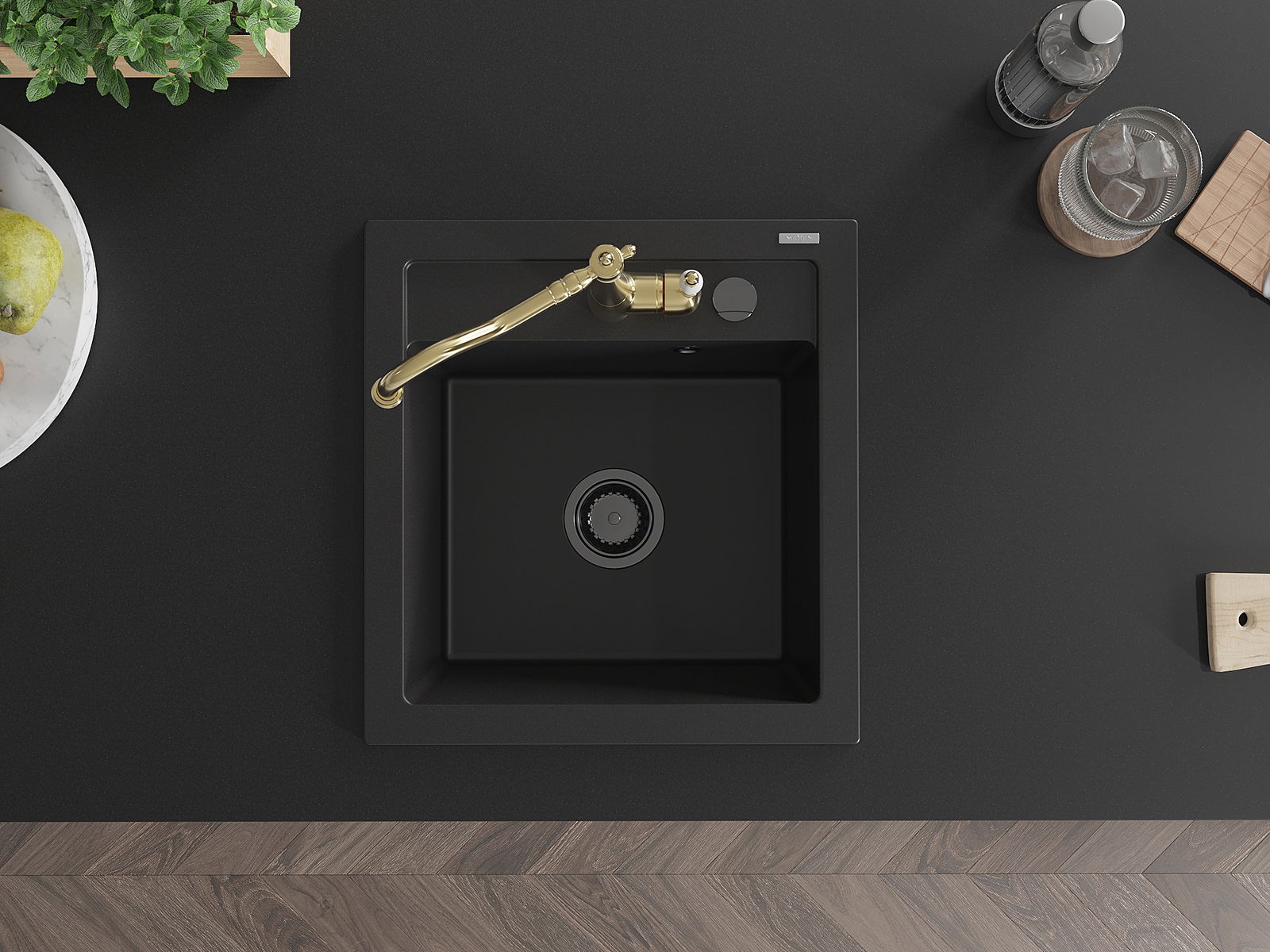 Mexen Vito évier de cuisine en granit à 1 bac avec robinet de cuisine Carla, noir - 6503-77-670700-50-B