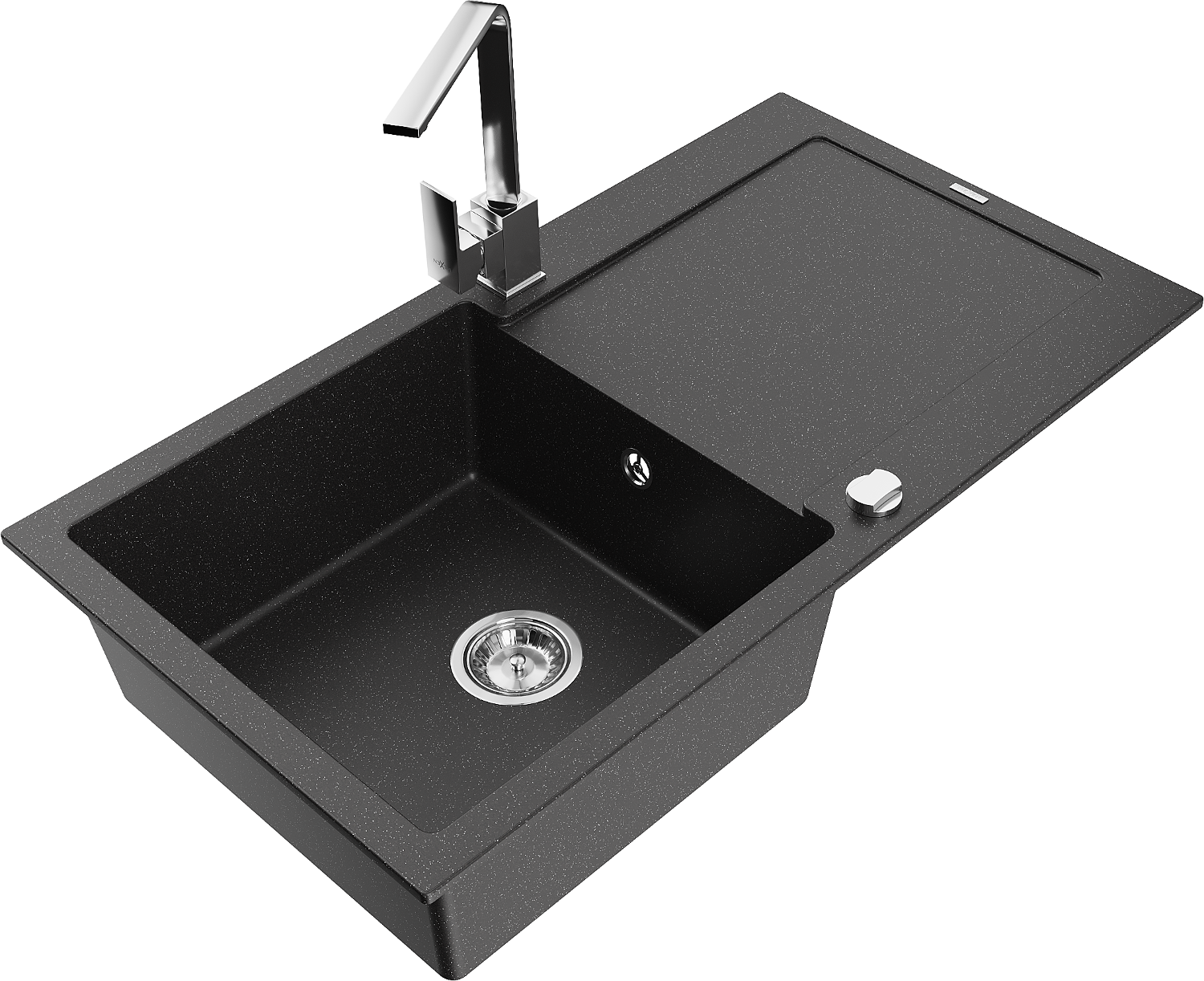 Mexen Leo évier en granit 1 bac avec égouttoir et mitigeur de cuisine Rita, noir/argent métallisé - 6501-73-670300-00
