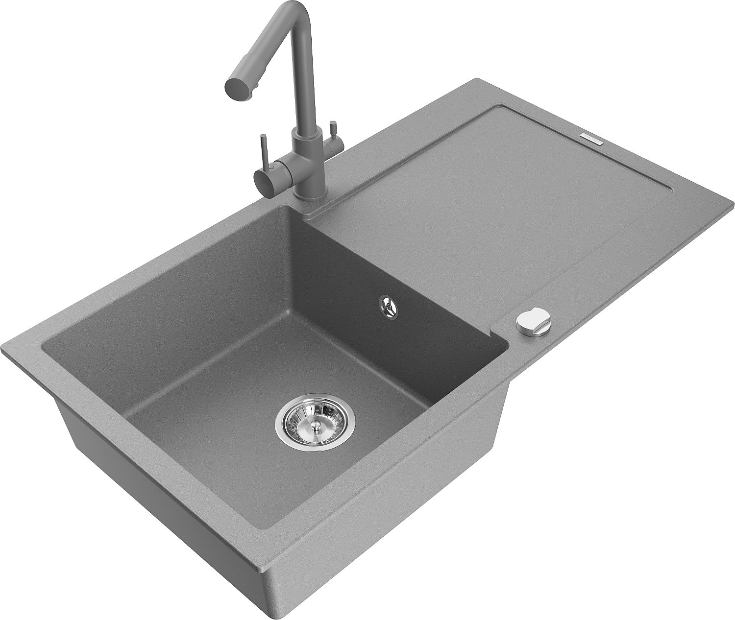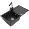Mexen Leo évier en granit 1 bac avec égouttoir et robinet de cuisine Duero, gris - 6501-71-671600-71