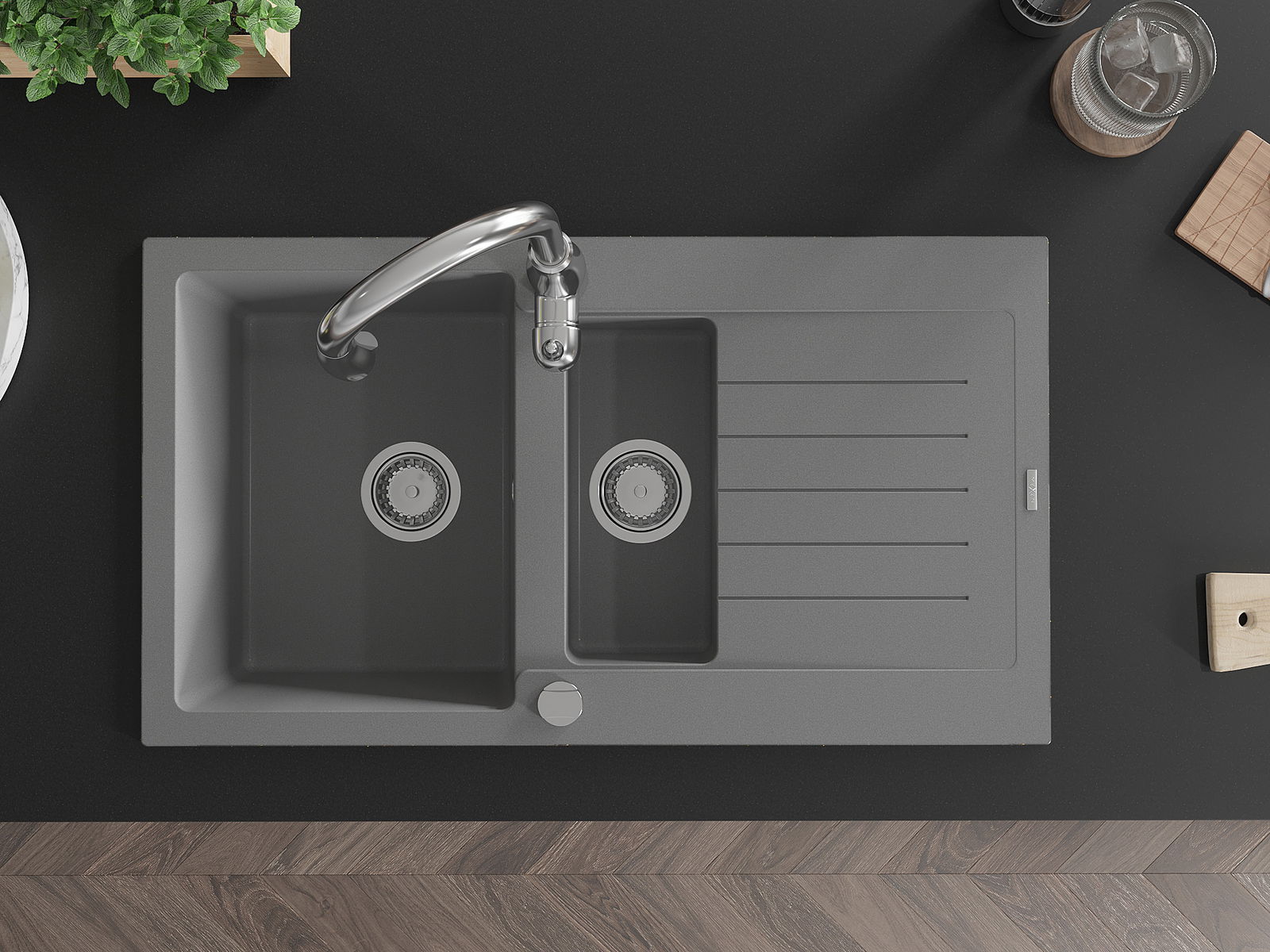 La surface de l'évier est très bien durcie, elle se distingue par une résistance exceptionnelle aux dommages mécaniques et aux rayures. Le matériau durable de fabrication permet de profiter de l'apparence de l'évier pendant de nombreuses années d'utilisation.
