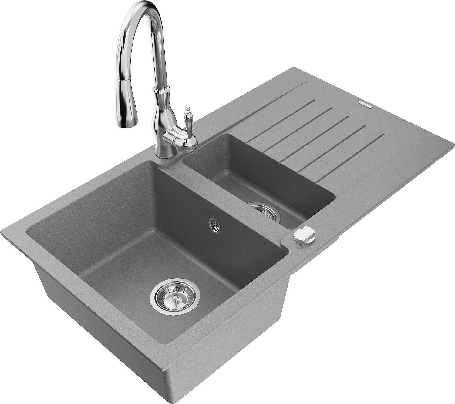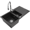 Mexen Matias évier en granit 1,5 bac avec égouttoir et robinet de cuisine Savita, gris - 6502-71-672601-00