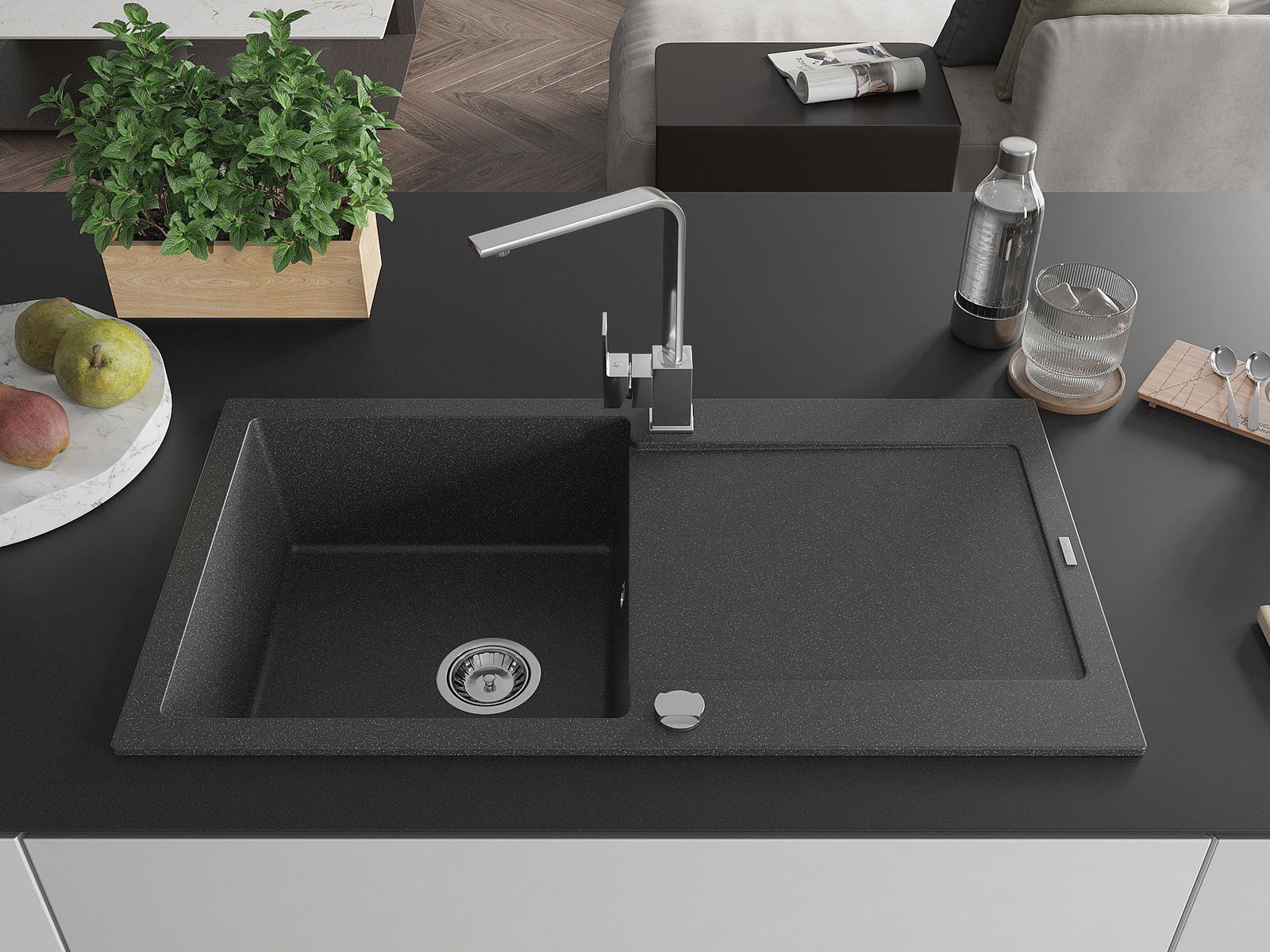 L'évier a été fabriqué en granit de haute qualité. Il constitue un complément élégant et surtout pratique à toute cuisine, quel que soit son style. La haute qualité et la durabilité du granit garantissent une utilisation pendant de nombreuses années.