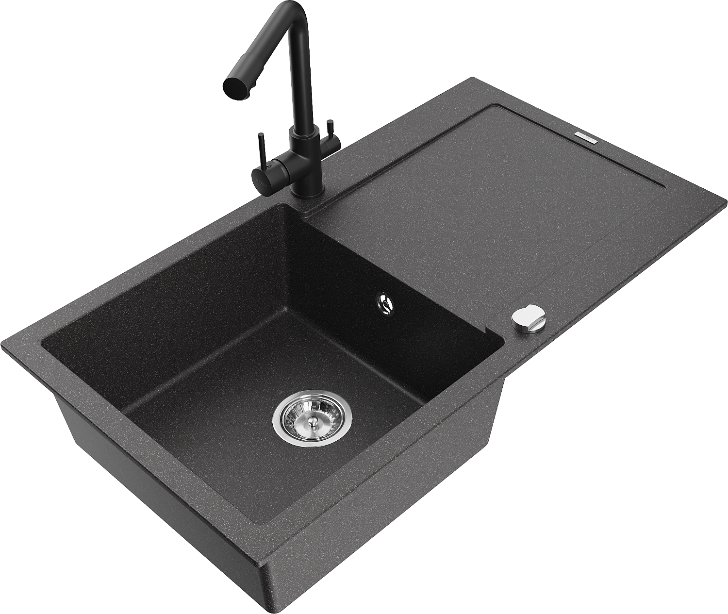 Mexen Leo évier en granit 1 bac avec égouttoir et robinet de cuisine Duero, noir moucheté - 6501-76-671600-70