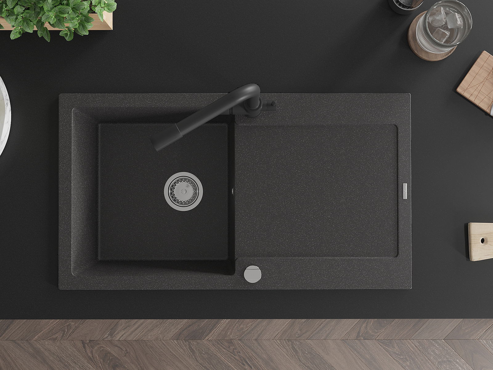La surface de l'évier est très bien durcie, elle se distingue par une résistance exceptionnelle aux dommages mécaniques et aux rayures. Le matériau durable de fabrication permet de profiter de l'apparence de l'évier pendant de nombreuses années d'utilisation.