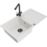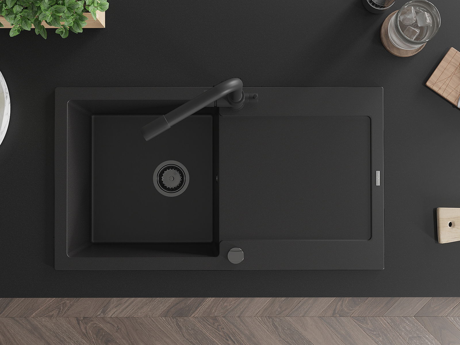 Mexen Leo évier en granit 1 bac avec égouttoir et robinet de cuisine Duero, noir - 6501-77-671600-70-B