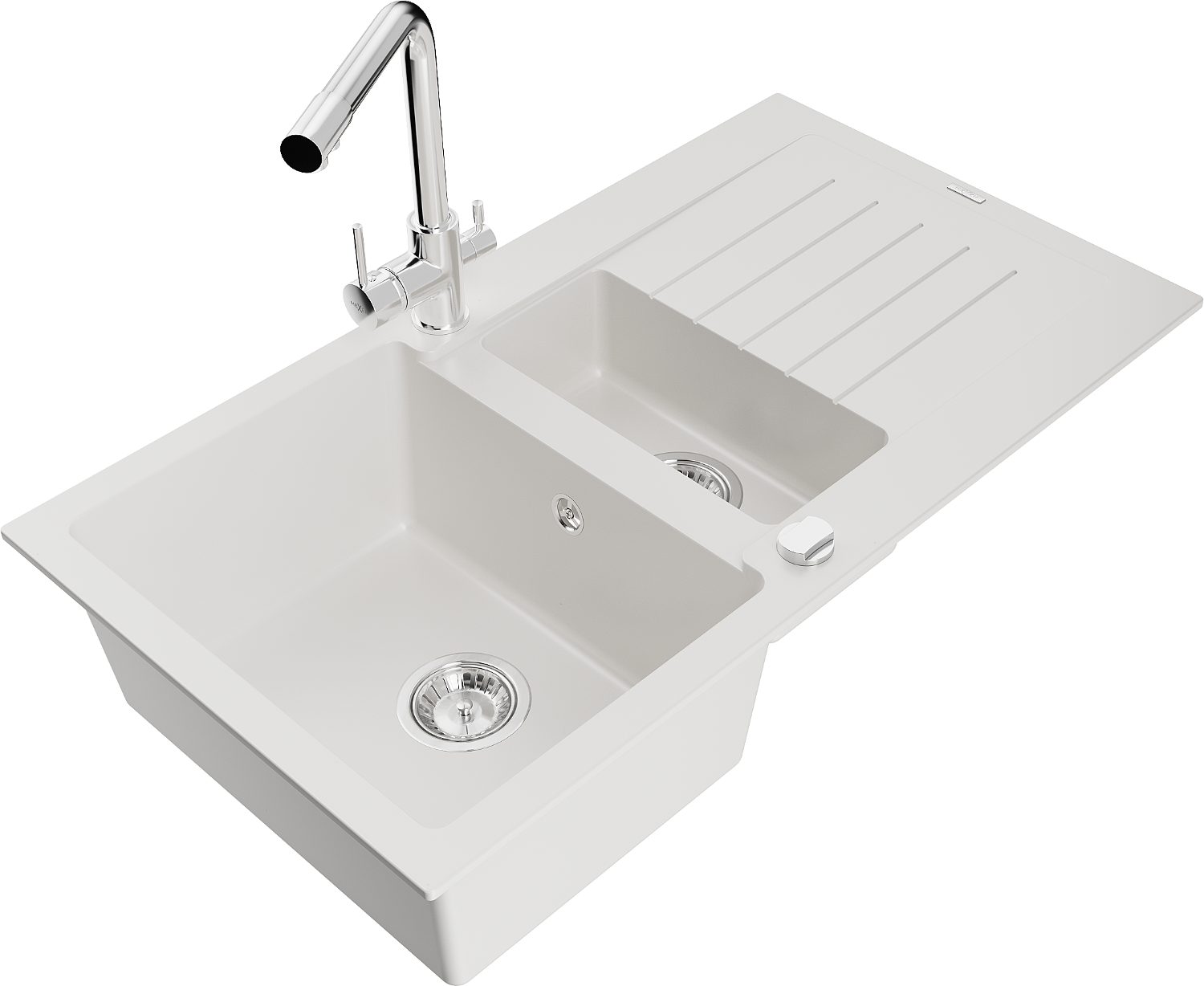 Mexen Matias évier en granit 1,5 bac avec égouttoir et robinet de cuisine Duero, blanc - 6502-20-671600-00