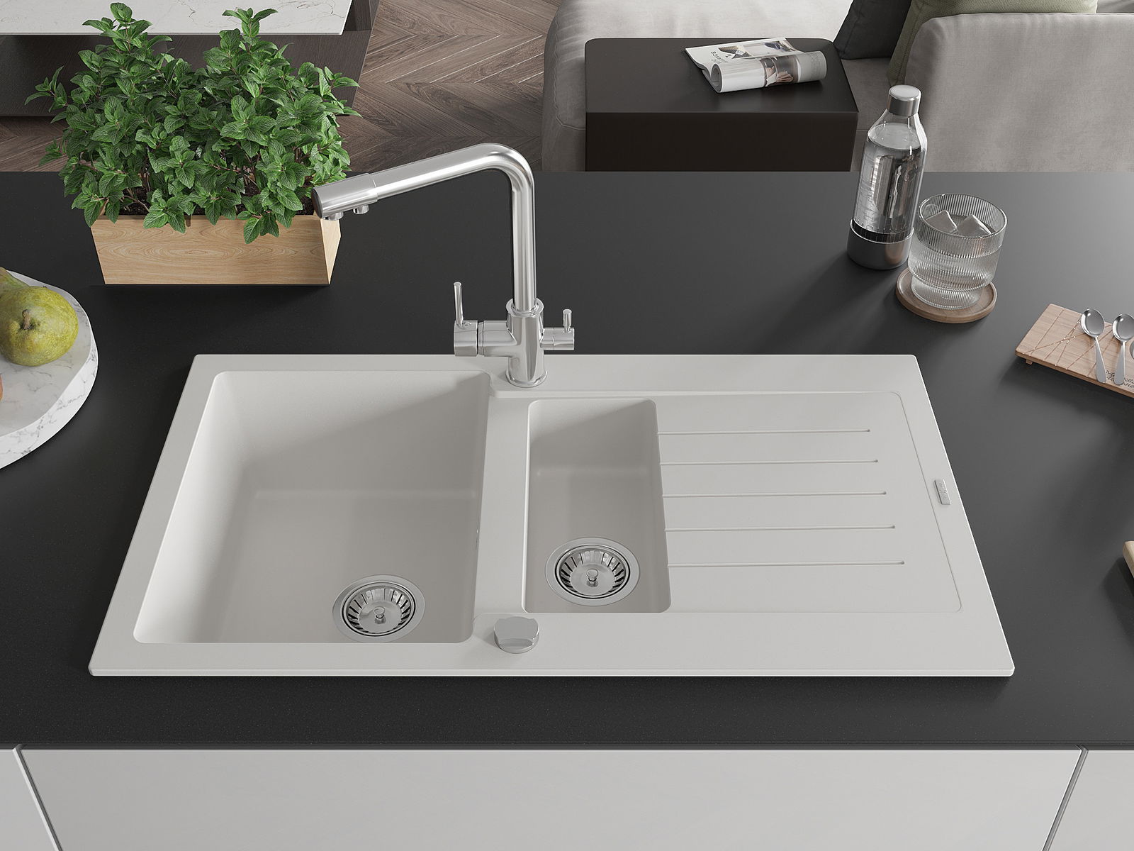 L'évier se distingue par une résistance exceptionnelle aux hautes températures et à leurs changements soudains, ce qui évite toute déformation même sous l'effet prolongé de l'eau chaude.