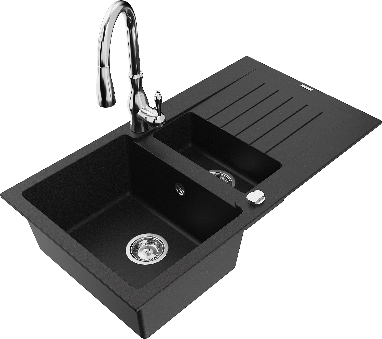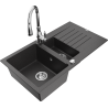 Mexen Matias évier en granit 1,5 bacs avec égouttoir et robinet de cuisine Savita, noir - 6502-77-672601-00