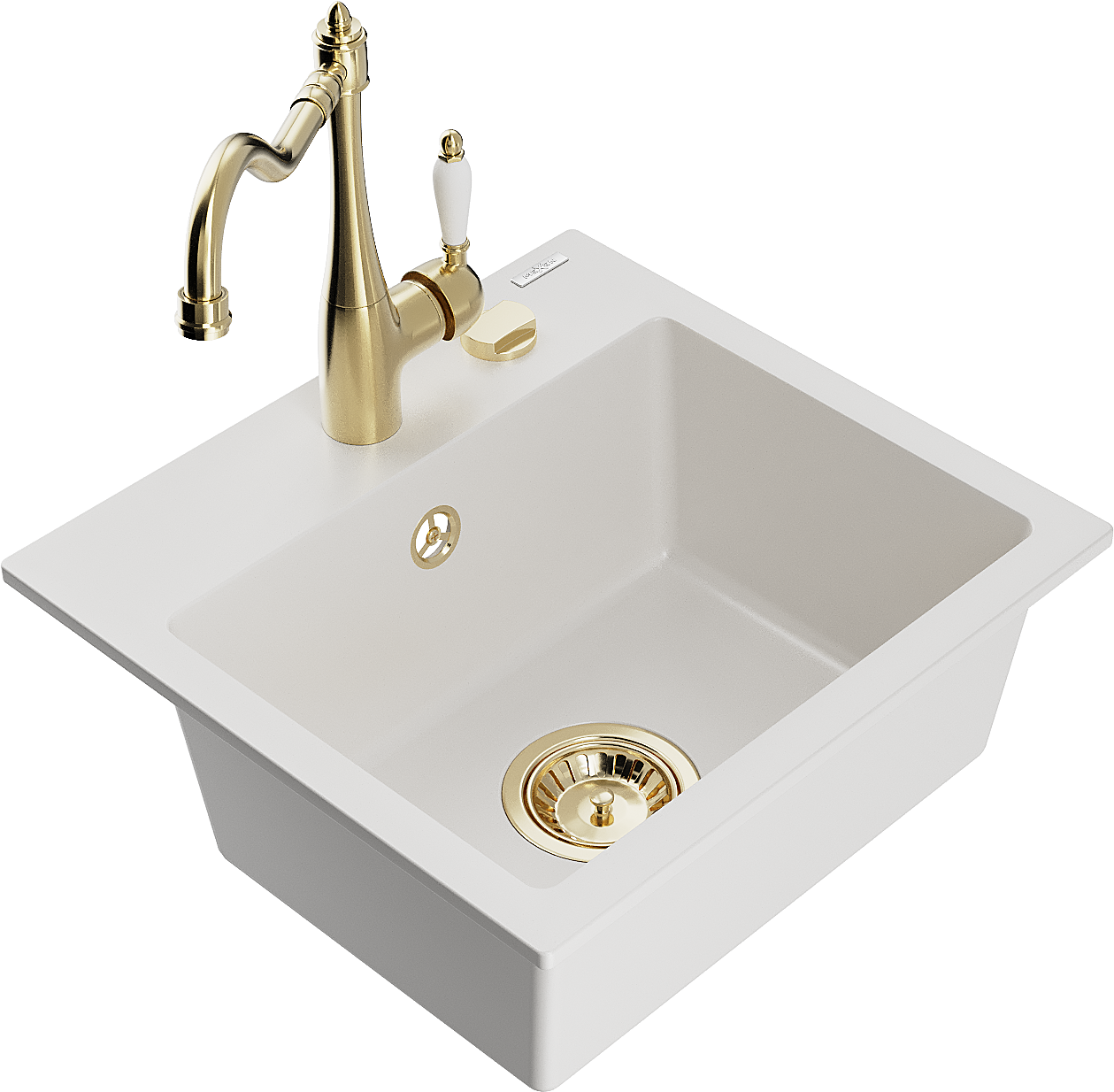 Mexen Milo Évier de cuisine en granit 1 bac avec robinet de cuisine Carla, blanc - 6505-20-670700-50