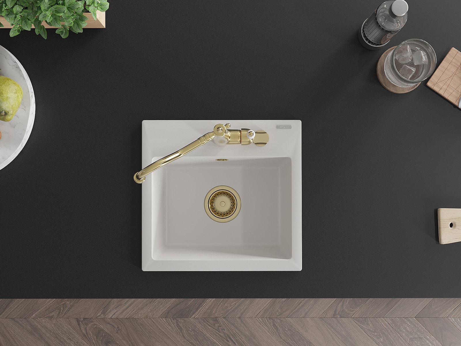 L'évier a un trou sous-meulé de 35 mm de diamètre à percer soi-même. Il peut être utilisé, entre autres, pour installer un distributeur de liquide, ce qui éliminera la présence de bouteilles en plastique dans la cuisine et lui donnera une finition élégante.