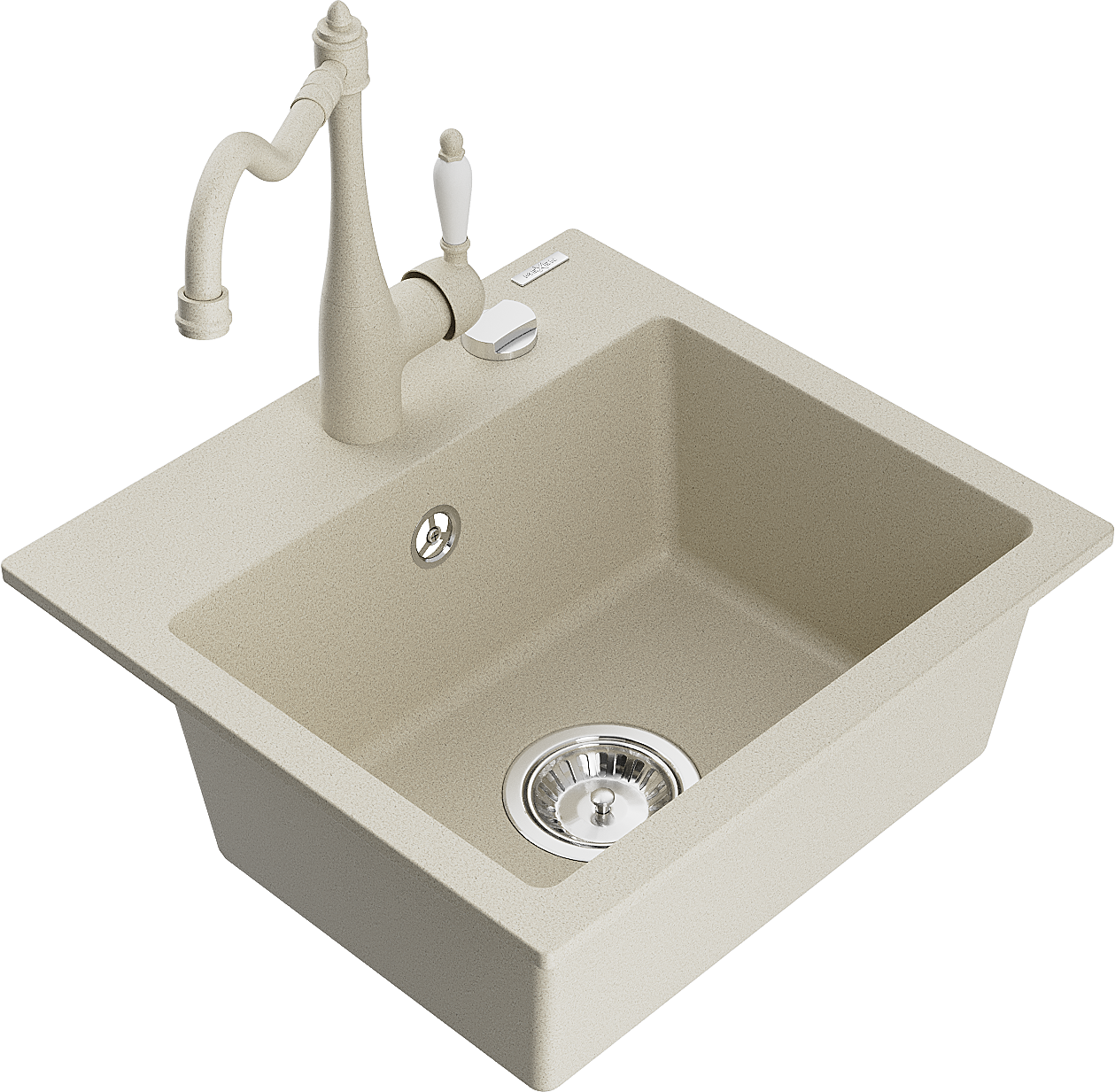 Mexen Milo évier en granit 1-bassin avec robinet de cuisine Carla, beige - 6505-69-670700-69