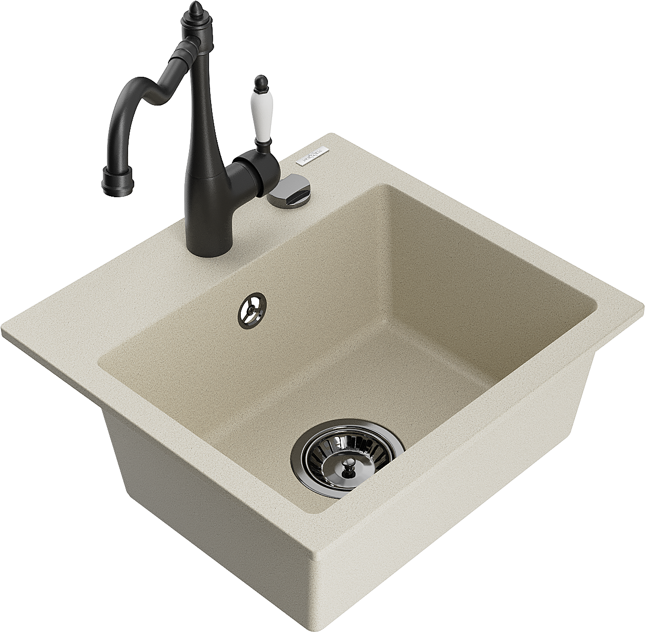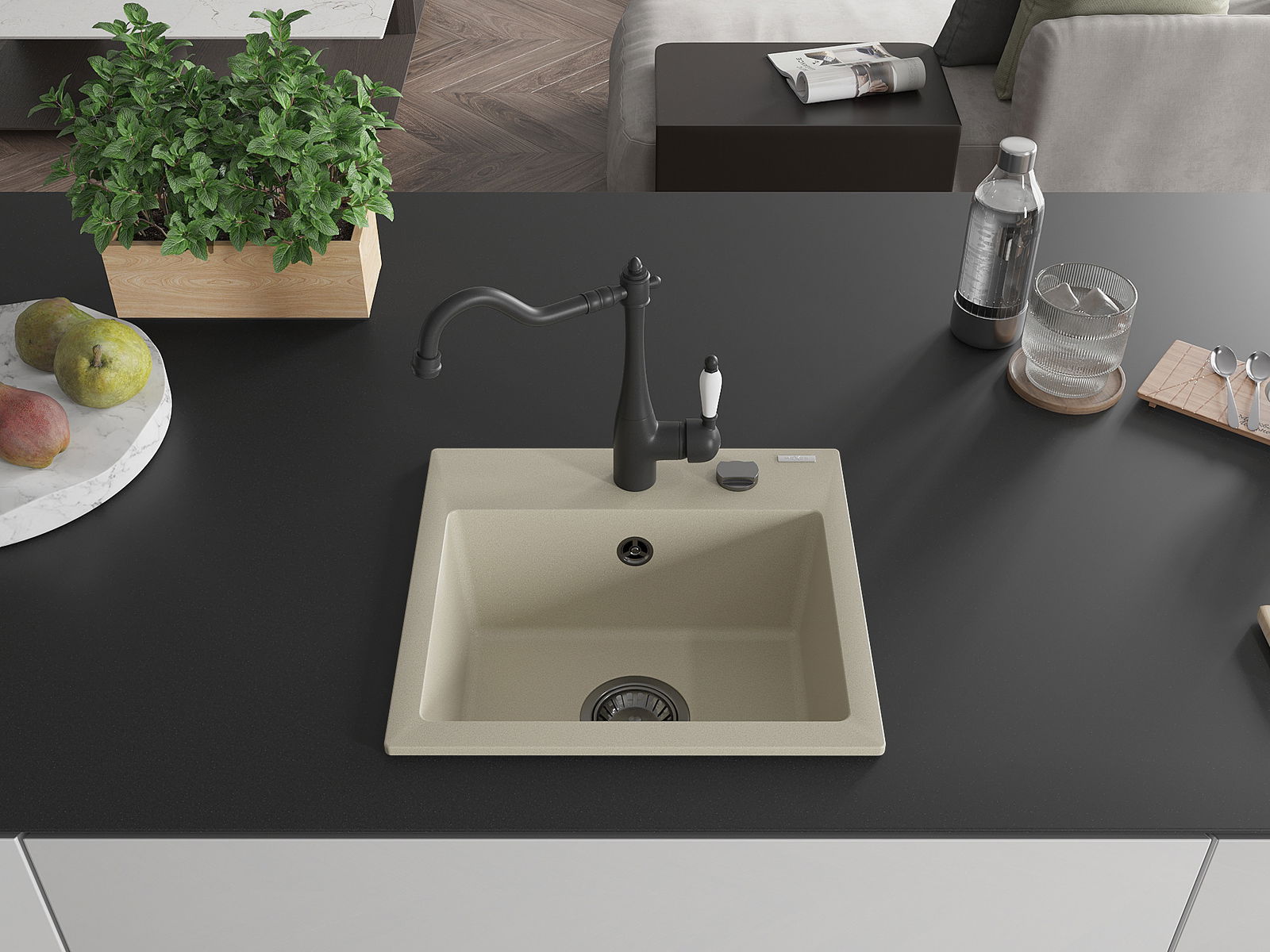 Mexen Milo évier en granit 1 bac avec robinet de cuisine Carla, beige - 6505-69-670700-70