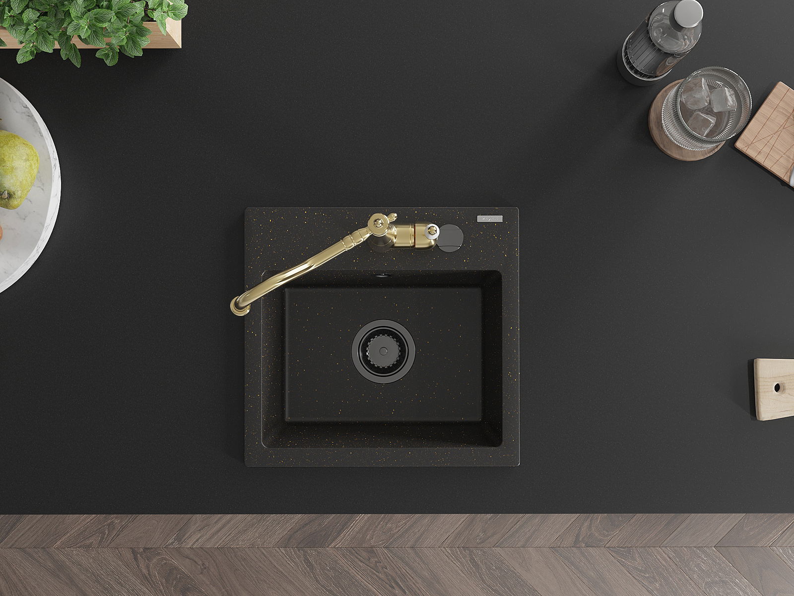 L'évier a un trou sous-meulé de 35 mm de diamètre à percer soi-même. Il peut être utilisé, entre autres, pour installer un distributeur de liquide, ce qui éliminera la présence de bouteilles en plastique dans la cuisine et lui donnera une finition élégante.