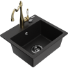 Mexen Milo évier en granit 1 bac avec robinet de cuisine Carla, noir/or métallique - 6505-75-670700-50-B
