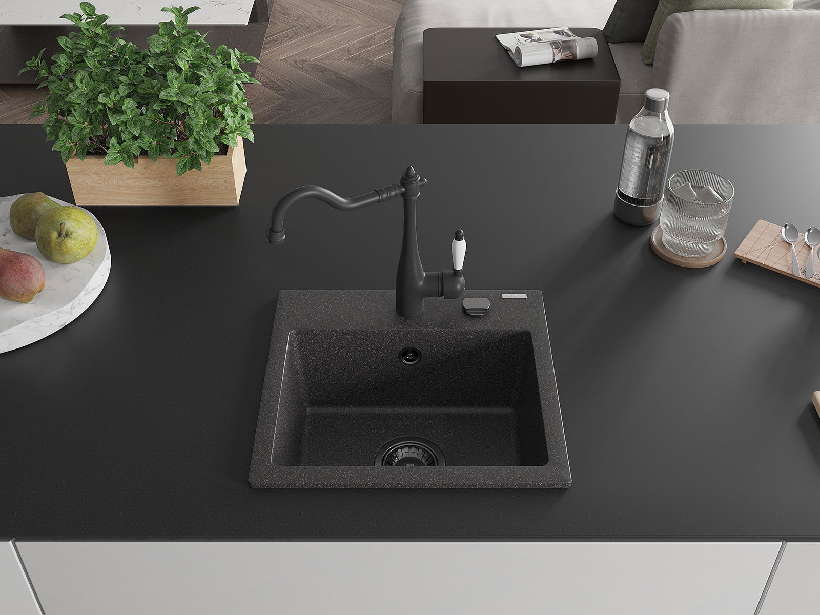 L'évier a été fabriqué en granit de haute qualité. Il constitue un complément élégant et surtout pratique à toute cuisine, quel que soit son style. La haute qualité et la durabilité du granit garantissent une utilisation pendant de nombreuses années.