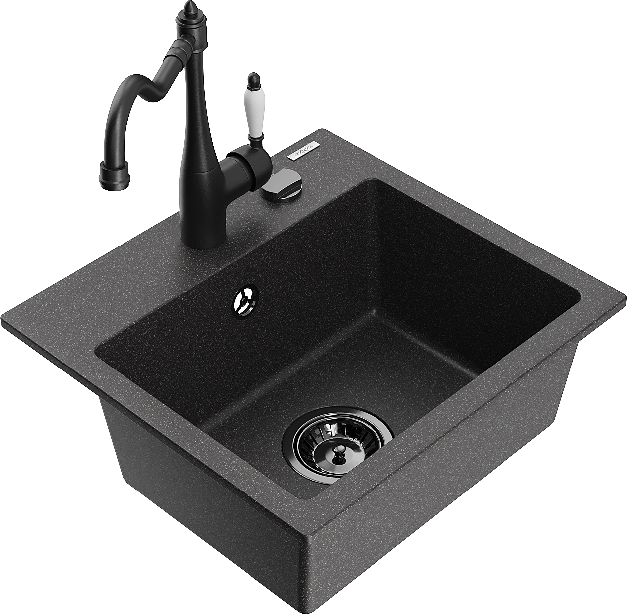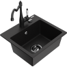 Mexen Milo évier en granit 1 bac avec robinet de cuisine Carla, noir moucheté - 6505-76-670700-70-B