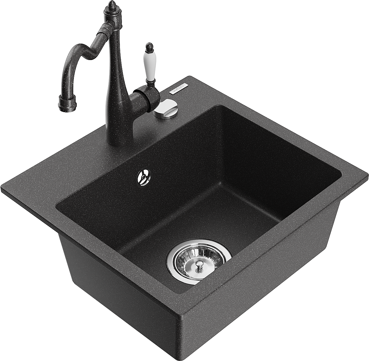 Mexen Milo évier en granit 1 bac avec mitigeur de cuisine Carla, noir moucheté - 6505-76-670700-76