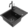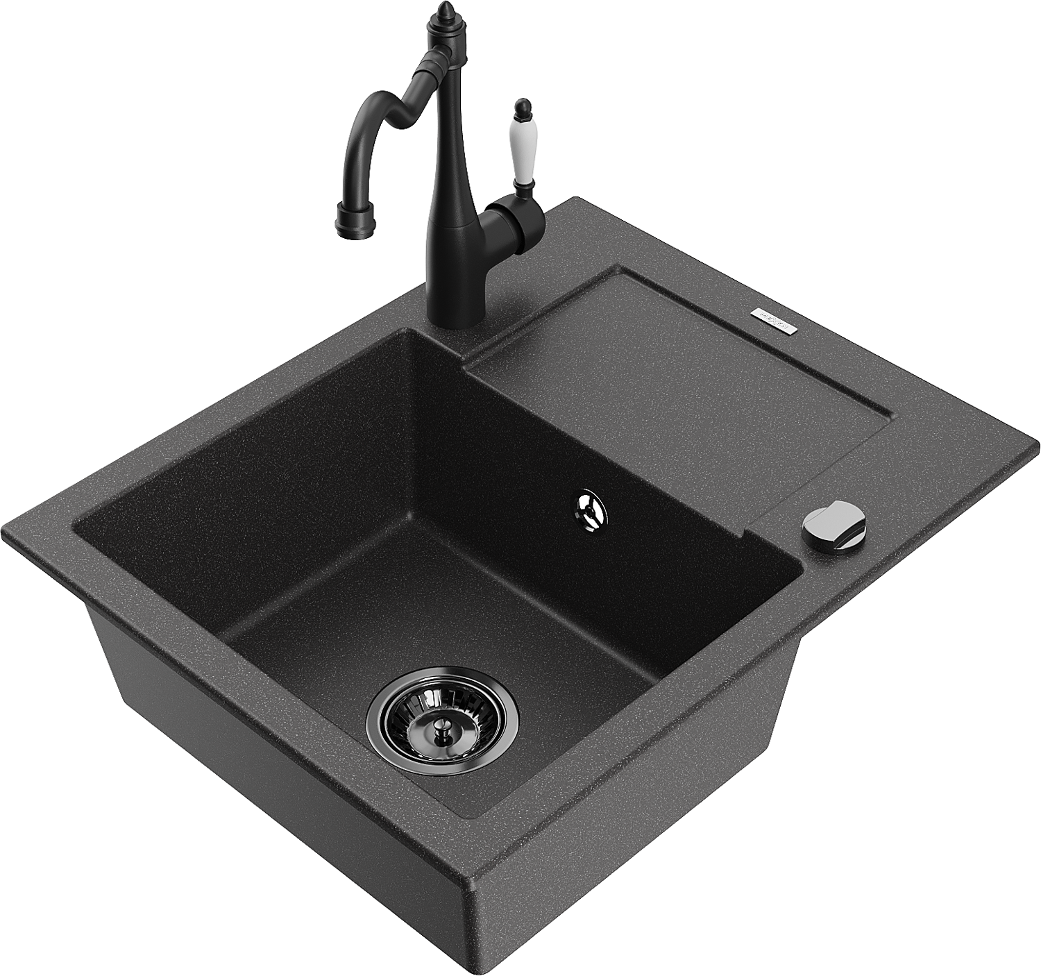 Mexen Enzo évier en granit 1-bac avec égouttoir et robinet de cuisine Carla, noir moucheté - 6506-76-670700-70-B