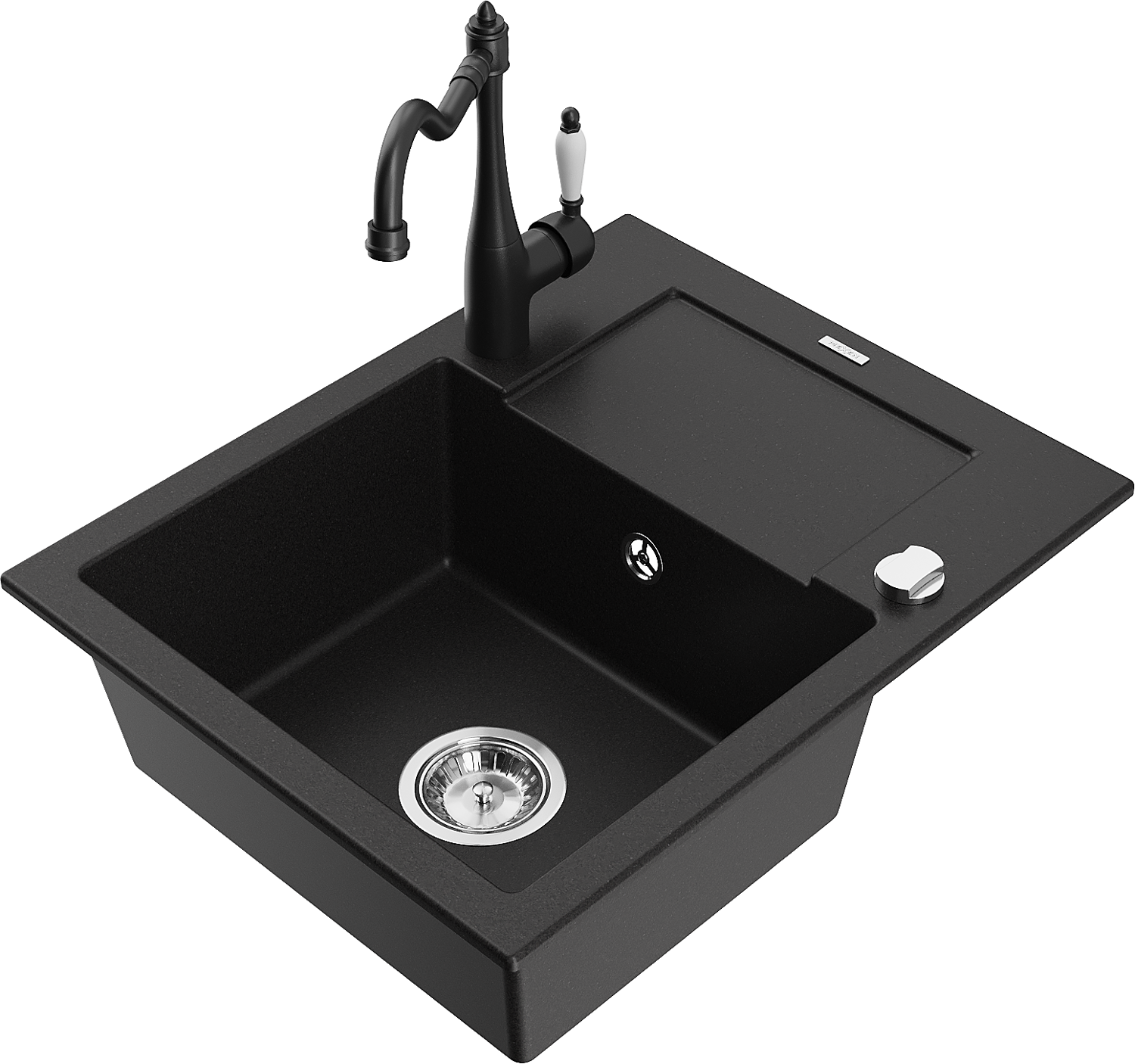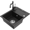 Mexen Enzo évier en granit 1 bac avec égouttoir et robinet de cuisine Carla, noir - 6506-77-670700-70
