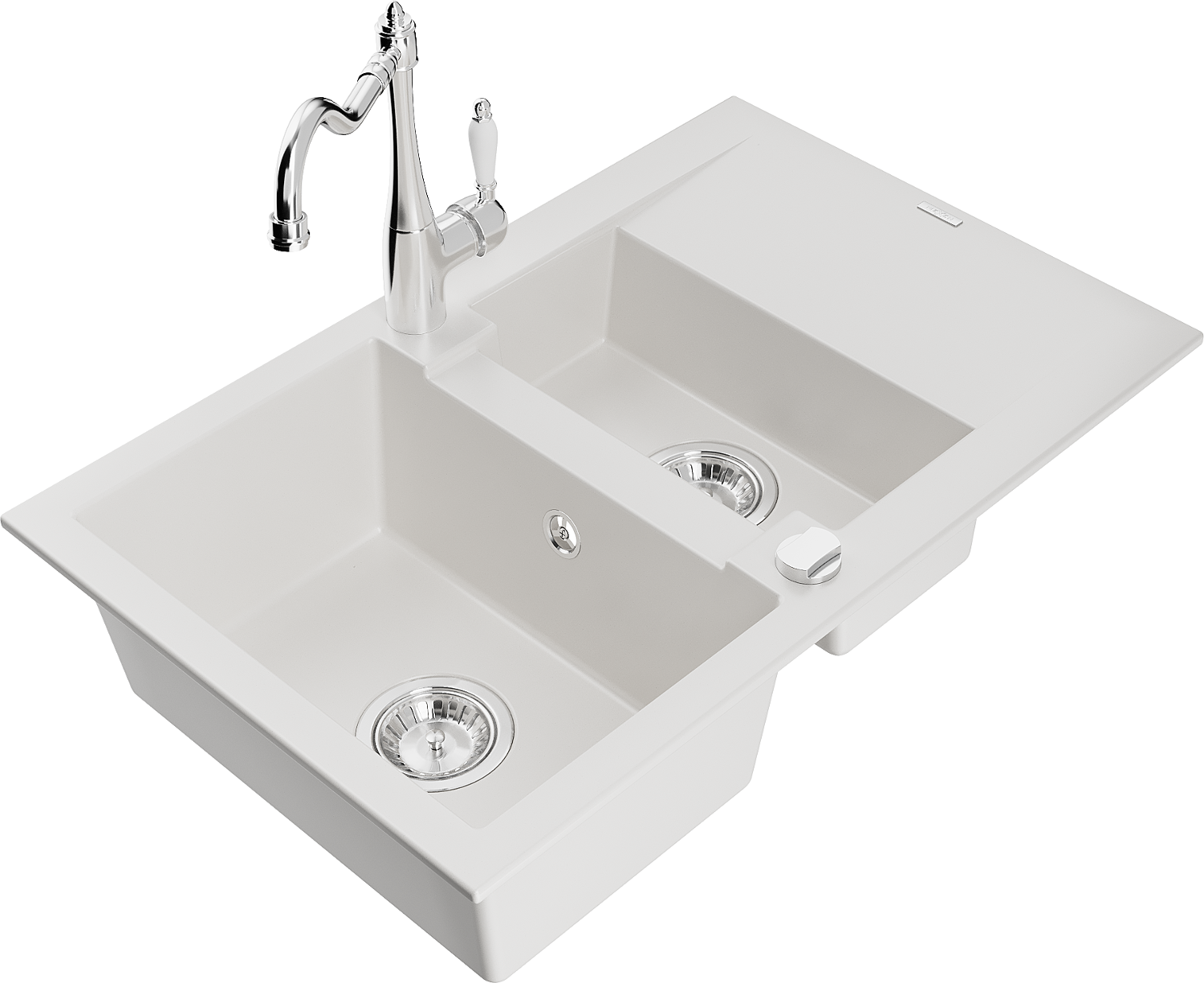 Mexen Gaspar évier en granit 1,5 bac avec égouttoir et robinet de cuisine Carla, blanc - 6507-20-670700-00
