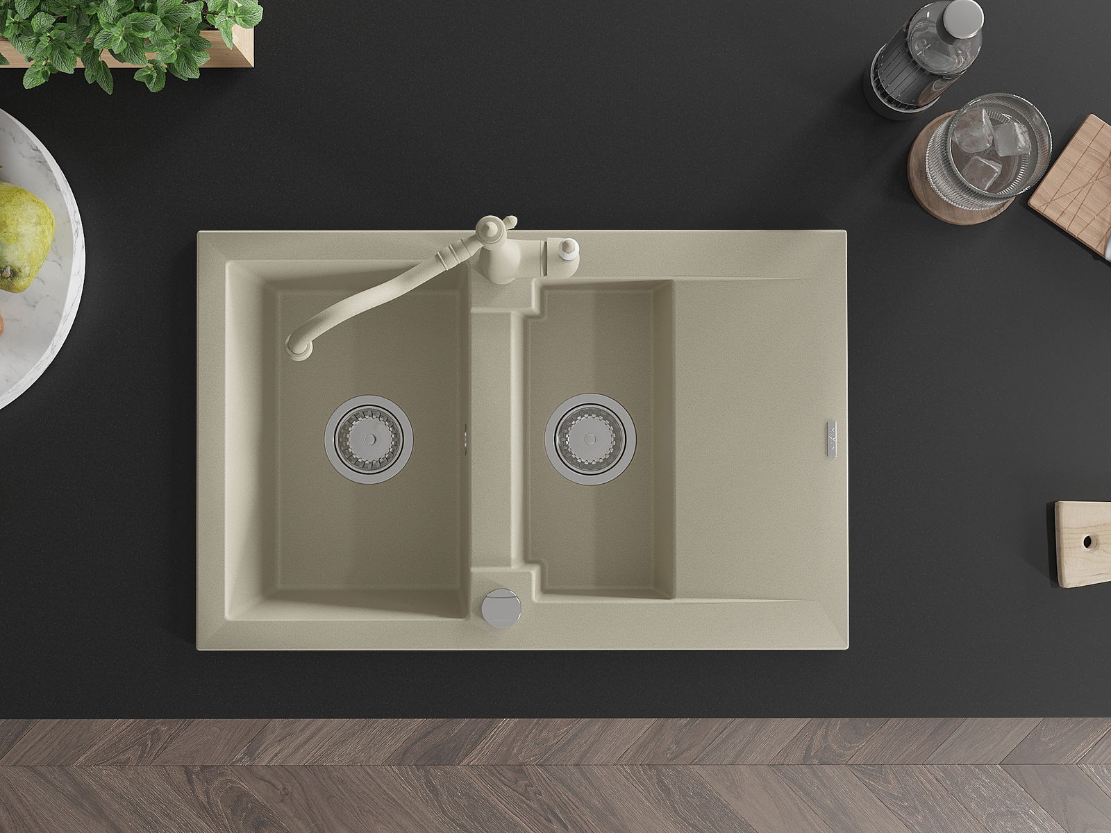 La surface de l'évier est très bien durcie, elle se distingue par une résistance exceptionnelle aux dommages mécaniques et aux rayures. Le matériau durable de fabrication permet de profiter de l'apparence de l'évier pendant de nombreuses années d'utilisation.